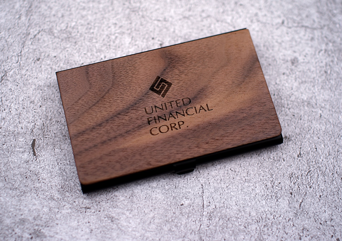 Puitkattega kaarditasku personaalse graveeringuga